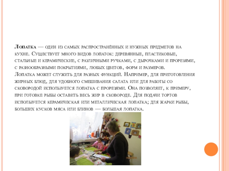 Слайд 11Лопатка — один из самых распространённых и нужных предметов на кухне.