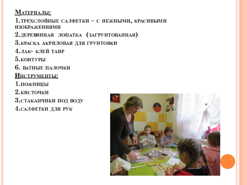 Сегодня на занятии для вас будет организован мастер класс по декупажированию деревянной лопатки.