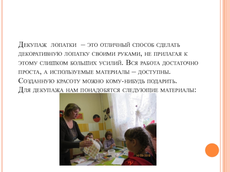 Слайд 12Декупаж лопатки – это отличный способ сделать декоративную лопатку своими руками,