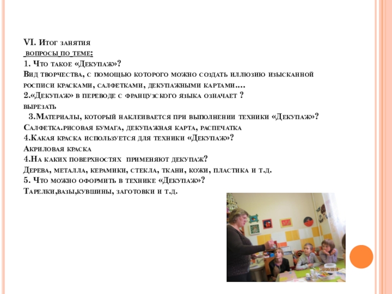 Слайд 22VI. Итог занятия
