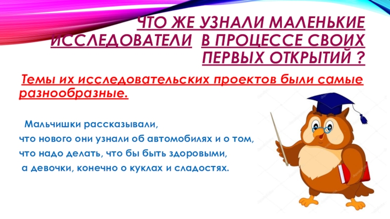 Слайд 7Что же узнали маленькие исследователи в процессе своих первых открытий ?