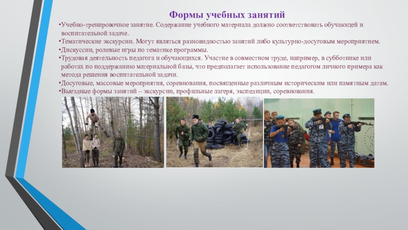 Выездные формы занятий – экскурсии, профильные лагеря, экспедиции, соревнования.