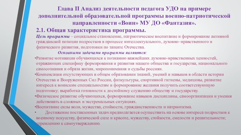 Слайд 7Глава II Анализ деятельности педагога УДО на примере дополнительной образовательной программы
