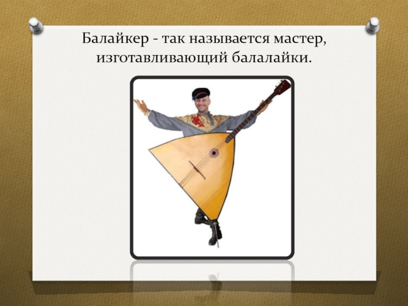 Слайд 21Балайкер - так называется мастер, изготавливающий балалайки.