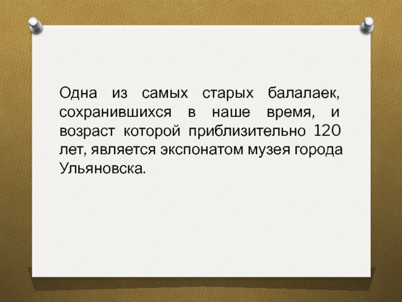 Слайд 19Одна из самых старых балалаек, сохранившихся в наше время, и возраст