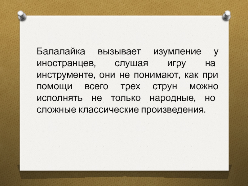 Слайд 7Балалайка вызывает изумление у иностранцев, слушая игру на инструменте, они не