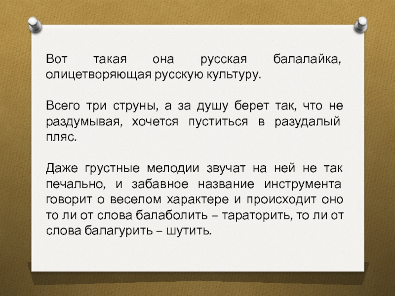 Слайд 9Вот такая она русская балалайка, олицетворяющая русскую культуру.