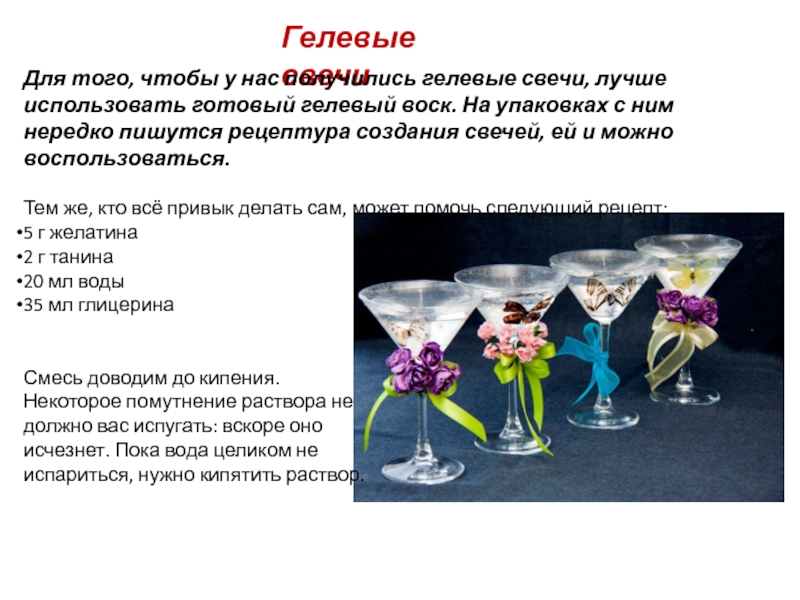 рецептуре. Отдельный, особо приятный процесс, декорирование гелевых свечей.