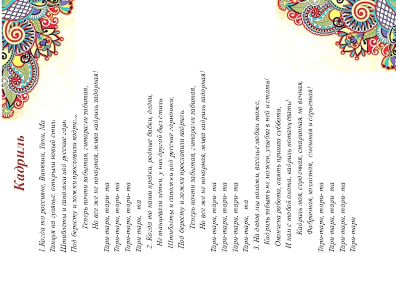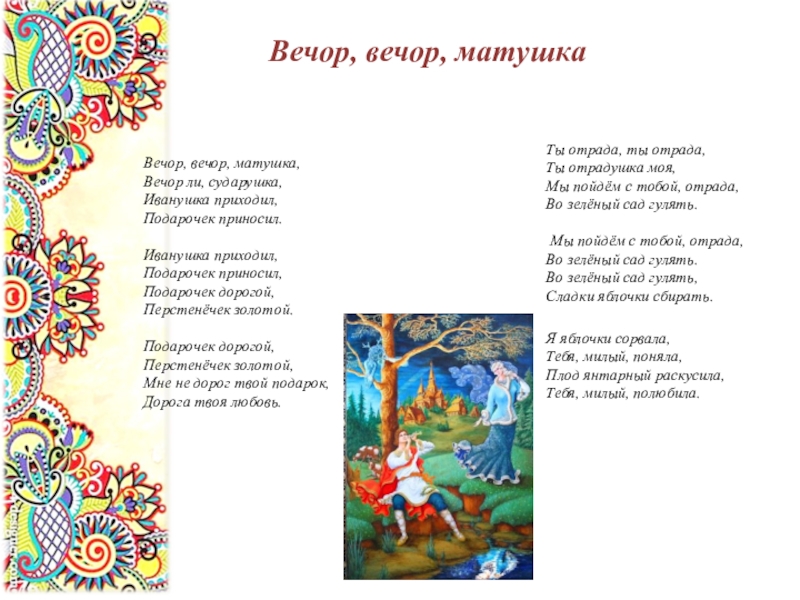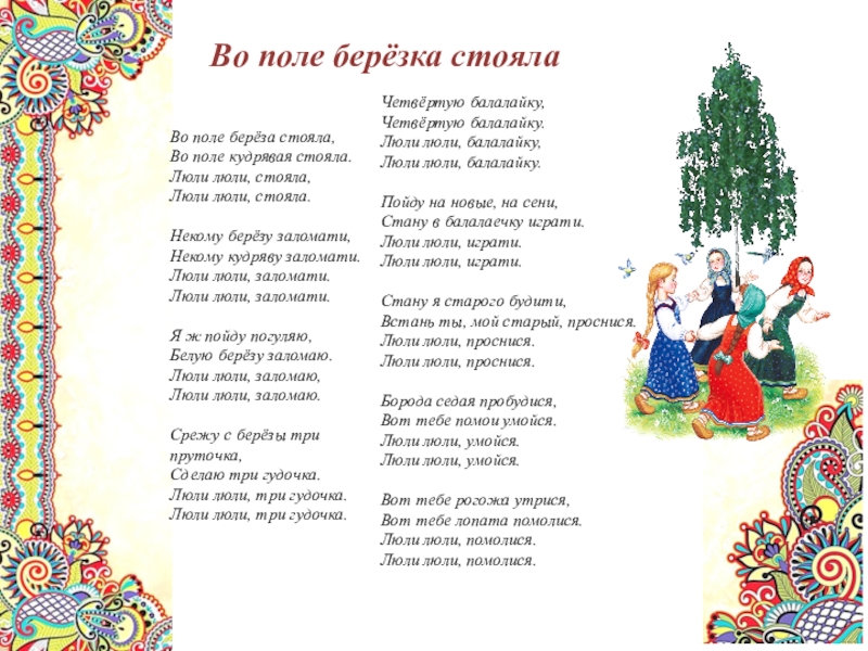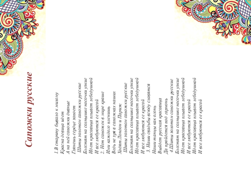 Русская народная песня — фольклорное произведение, которое сохраняется в народной памяти и передаётся из уст в уста, продукт коллективного устного творчества русского народа.
