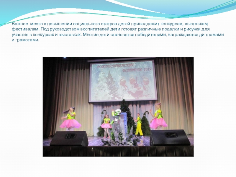 Слайд 17Важное место в повышении социального статуса детей принадлежит конкурсам, выставкам, фестивалям.