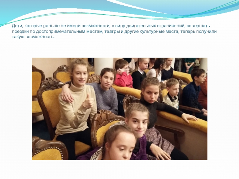 Слайд 15Дети, которые раньше не имели возможности, в силу двигательных ограничений, совершать