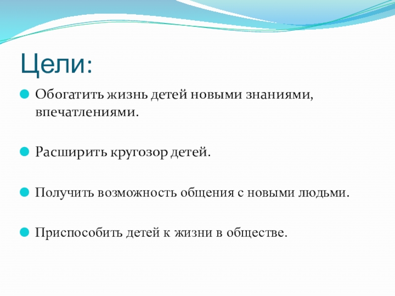 Обогатить жизнь детей новыми знаниями, впечатлениями.