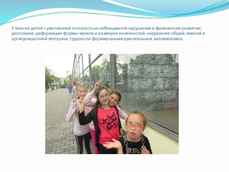 Слайд 4У многих детей с умственной отсталостью наблюдаются нарушения в физическом развитии: