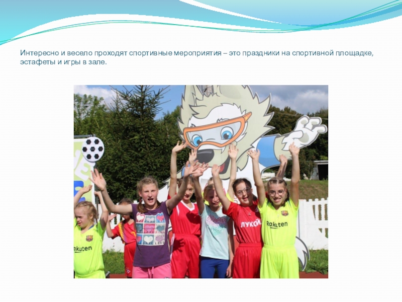 Слайд 14Интересно и весело проходят спортивные мероприятия – это праздники на спортивной