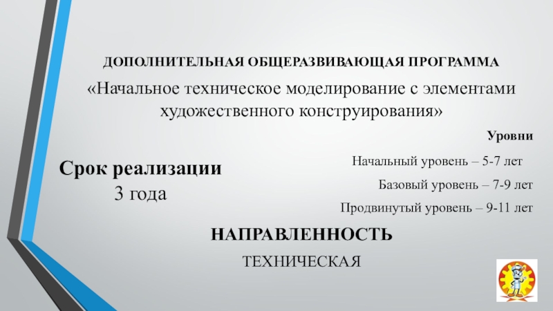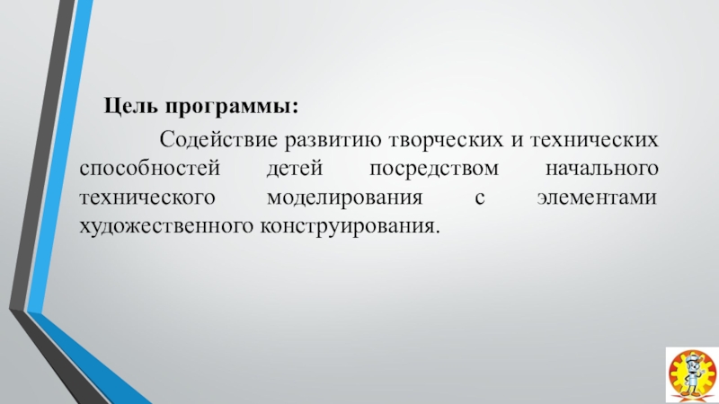 развитию творческих и технических способностей детей посредством начального технического моделирования с элементами художественного конструирования.