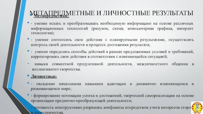 Слайд 12МЕТАПРЕДМЕТНЫЕ И ЛИЧНОСТНЫЕ РЕЗУЛЬТАТЫ