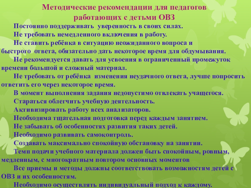 5. Оказание консультативной и методической помощи родителям (законным представителям) детей с ОВЗ по вопросам развития и обучения ребенка, вопросам правового обеспечения и иным.