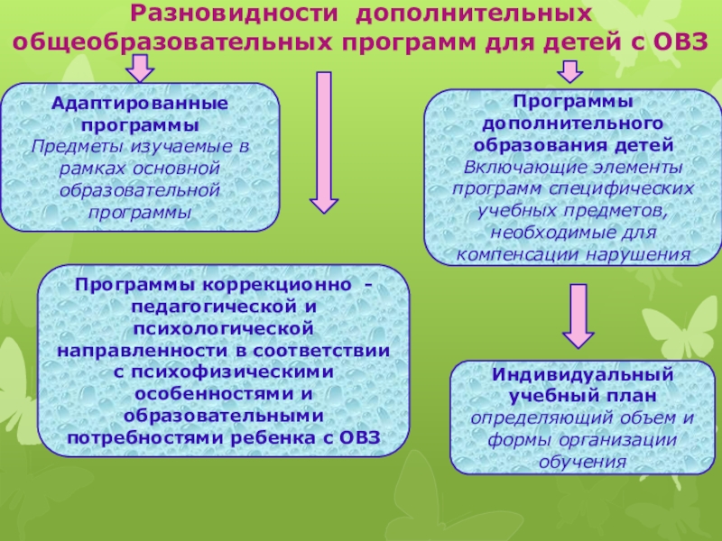 Программы коррекционно - педагогической и психологической направленности в соответствии с психофизическими особенностями и образовательными потребностями ребенка с ОВЗ