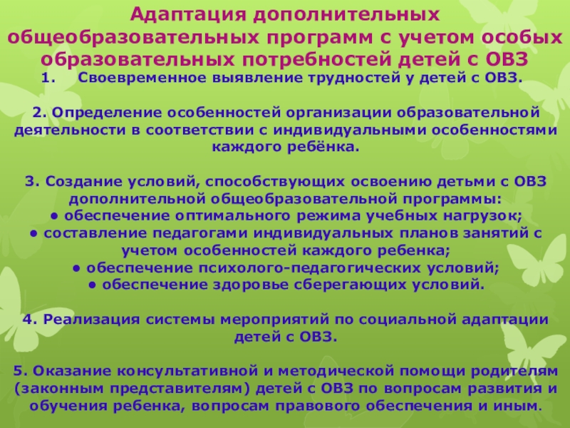 3. Создание условий, способствующих освоению детьми с ОВЗ дополнительной общеобразовательной программы: