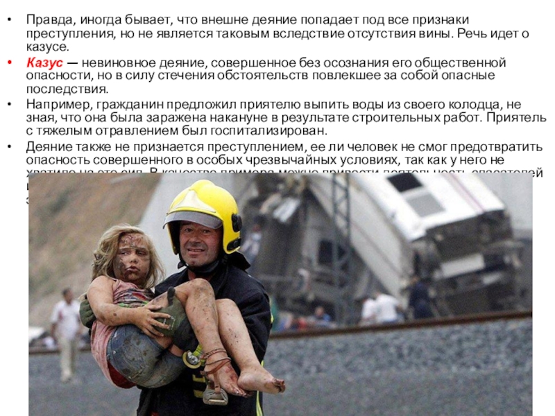 Слайд 33Правда, иногда бывает, что внешне деяние попадает под все признаки преступления,