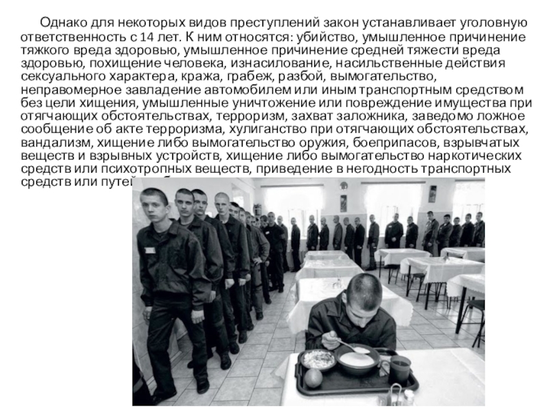 Слайд 22 Однако для некоторых видов преступлений закон устанавливает уголовную