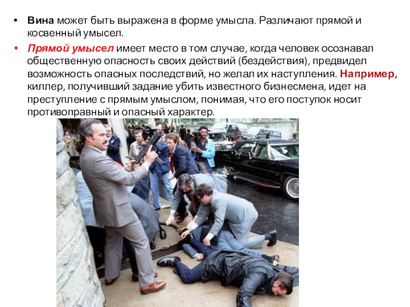 Слайд 28Вина может быть выражена в форме умысла. Различают прямой и косвенный