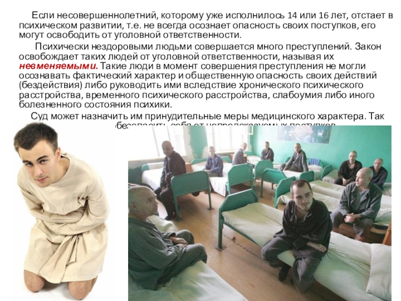 14 или 16 лет, отстает в психическом развитии, т.е. не всегда осознает опасность своих поступков, его могут освободить от уголовной ответственности.