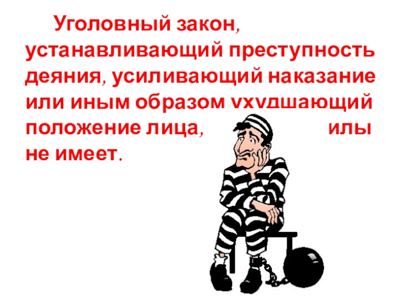 Слайд 14 Уголовный закон, устанавливающий преступность деяния, усиливающий наказание или