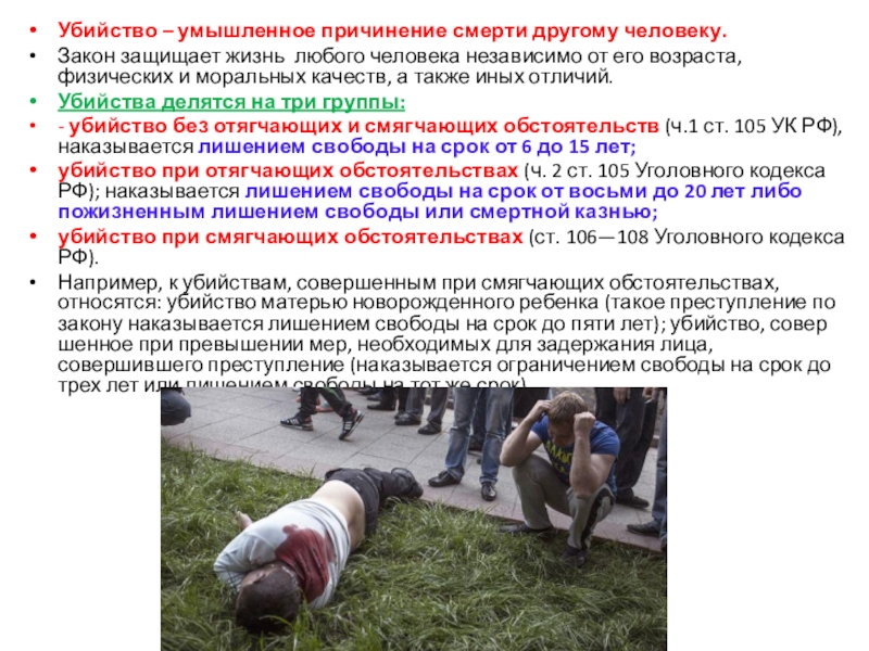 Слайд 39Убийство – умышленное причинение смерти другому человеку.