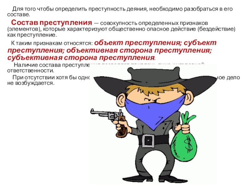 Слайд 19 Для того чтобы определить преступность деяния, необходимо разобраться в