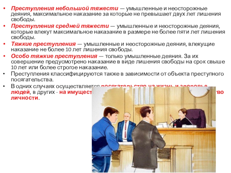 Преступления небольшой тяжести — умышленные и неосторожные деяния, максимальное наказание за которые не превышает двух лет лишения свободы.