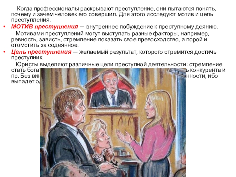 пытаются понять, почему и зачем человек его совершил. Для этого исследуют мотив и цель преступления.