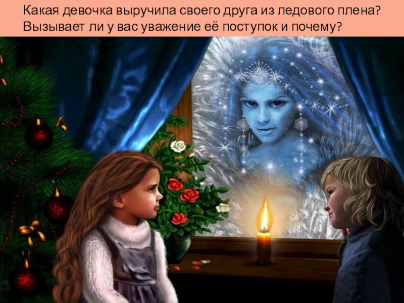 Слайд 12Какая девочка выручила своего друга из ледового плена? Вызывает ли у