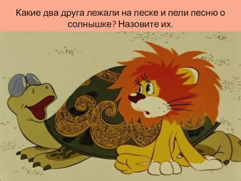 Слайд 14Какие два друга лежали на песке и пели песню о солнышке?