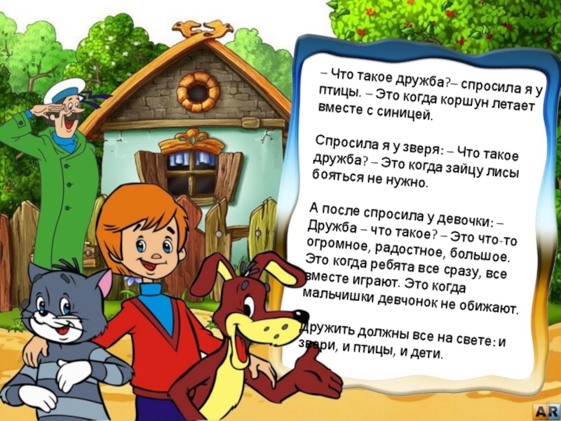 Слайд 2– Что такое дружба?– спросила я у птицы. – Это когда