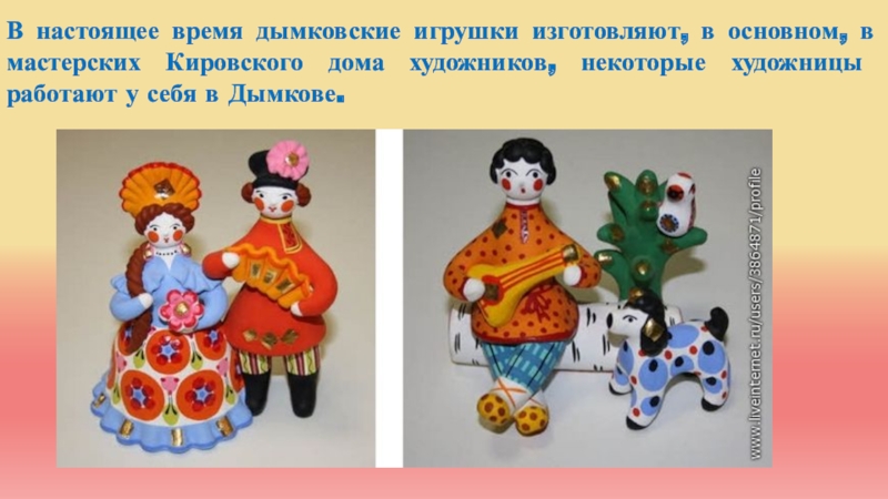 Слайд 14В настоящее время дымковские игрушки изготовляют, в основном, в мастерских Кировского