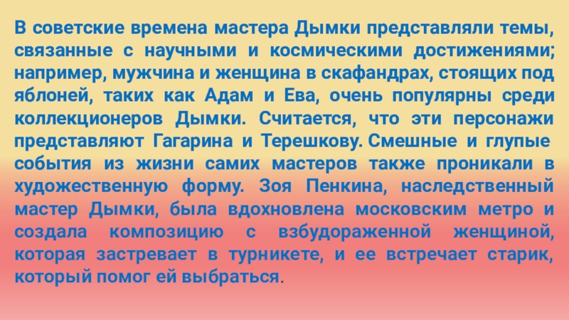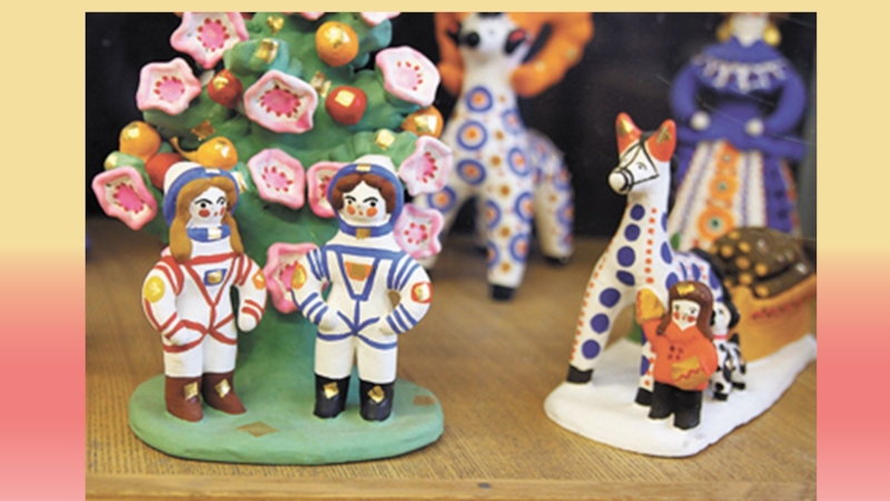 Слайд 6В советские времена мастера Дымки представляли темы, связанные с научными и