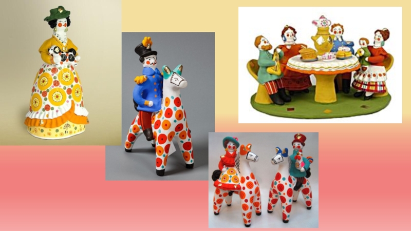 Краснощекие дымковские «кормилки», «водоноски», «барыни» полны забавной важности и достоинства, а свистульки-бараны в штанишках, удалые всадники – веселы и задорны.