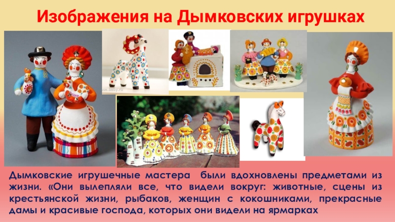 Дымковские игрушечные мастера были вдохновлены предметами из жизни. «Они вылепляли