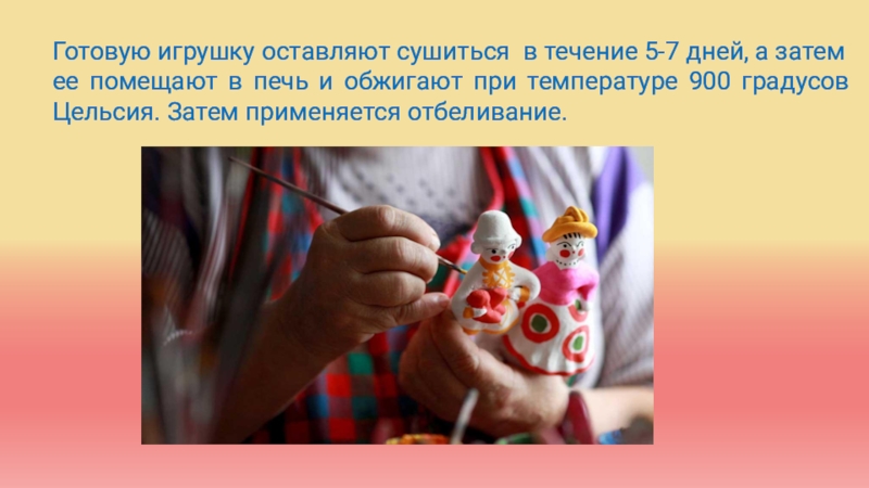 Слайд 12Готовую игрушку оставляют сушиться в течение 5-7 дней, а затем ее