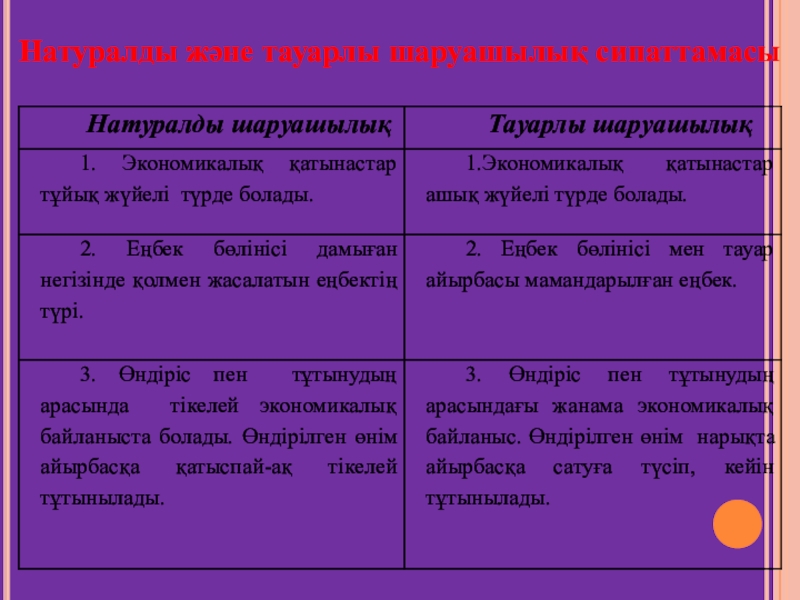 Натуралды және тауарлы шаруашылық сипаттамасы