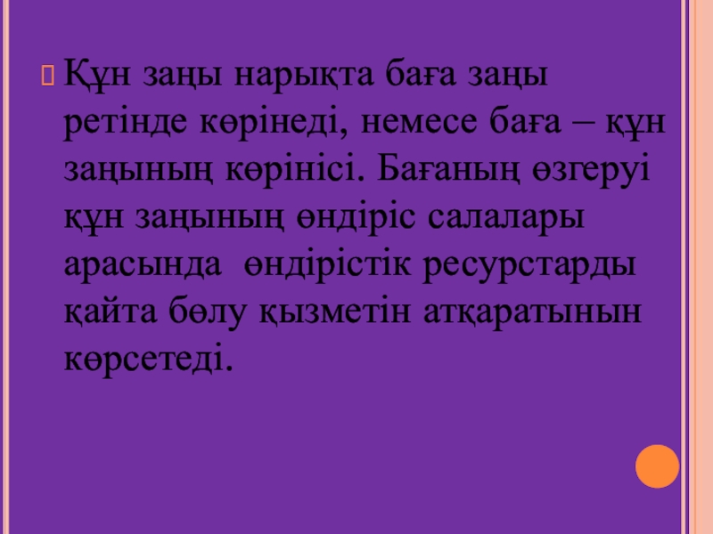 Слайд 11Құн заңы нарықта баға заңы ретінде көрінеді, немесе баға – құн