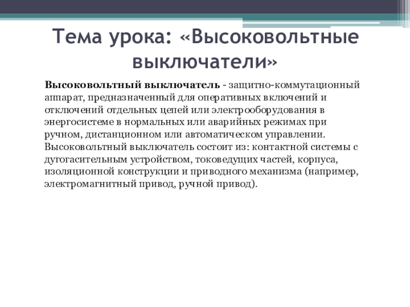 Слайд 2Тема урока: «Высоковольтные выключатели»