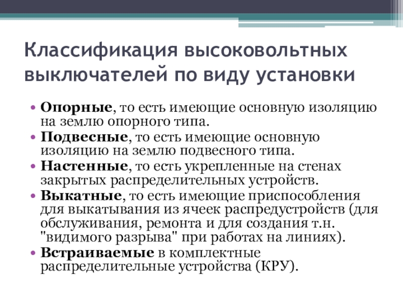 Слайд 8Классификация высоковольтных выключателей по виду установки
