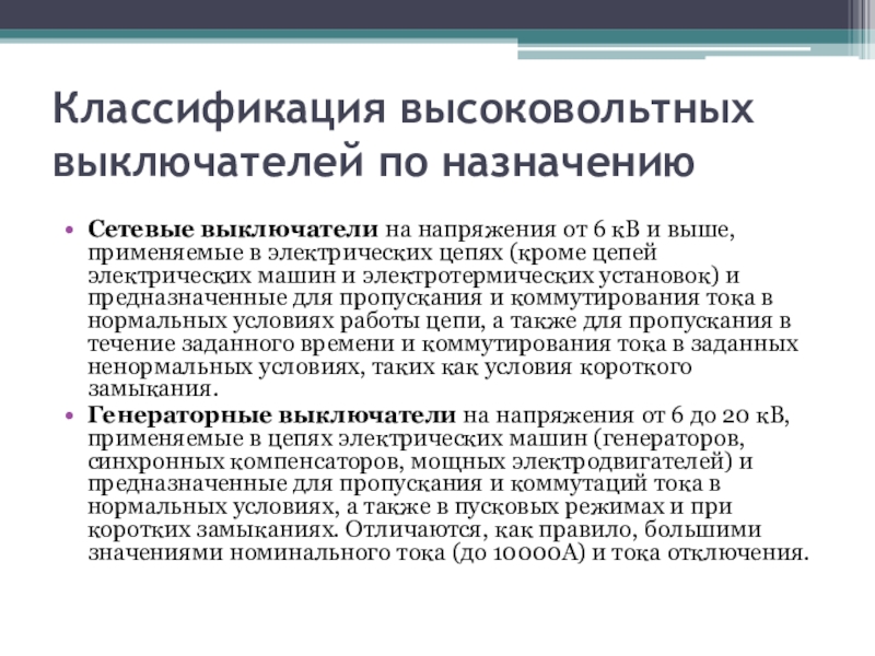 Слайд 6Классификация высоковольтных выключателей по назначению