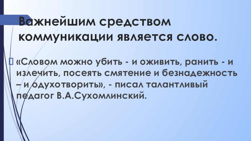- и излечить, посеять смятение и безнадежность – и одухотворить», - писал талантливый педагог В.А.Сухомлинский.