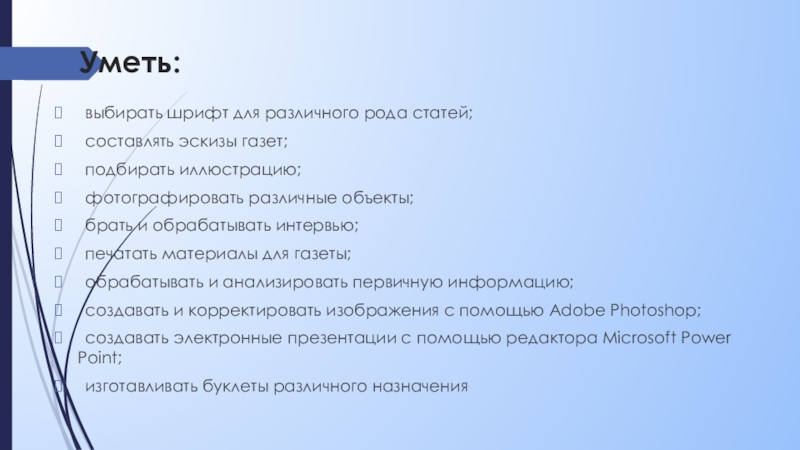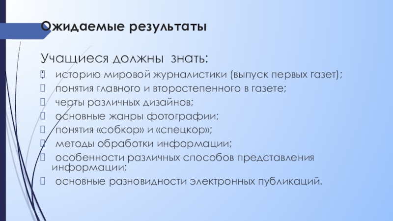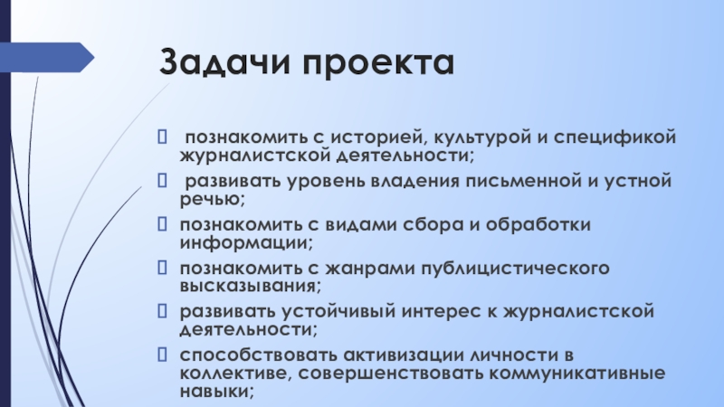 познакомить с историей, культурой и спецификой журналистской деятельности;
