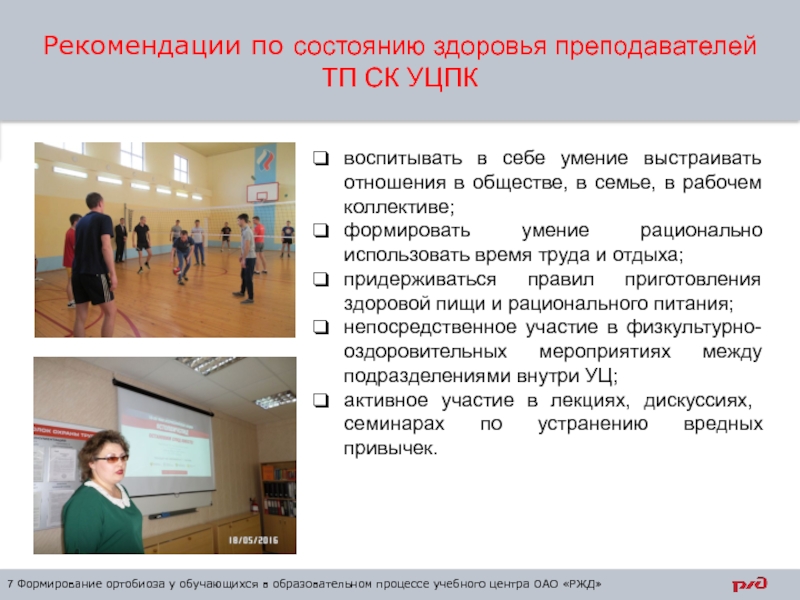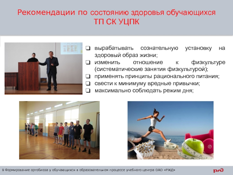 4. Разработка рекомендации по формированию здорового образа жизни в образовательном учреждении учебного центра ОАО «РЖД».