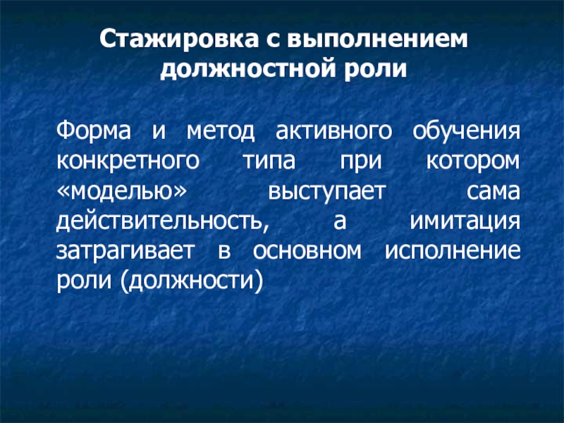 Стажировка с выполнением должностной ролиФорма и метод активного обучения конкретного типа при котором «моделью» выступает сама действительность,