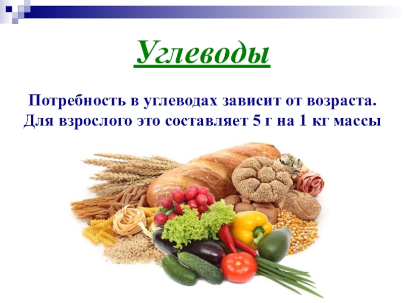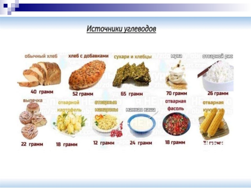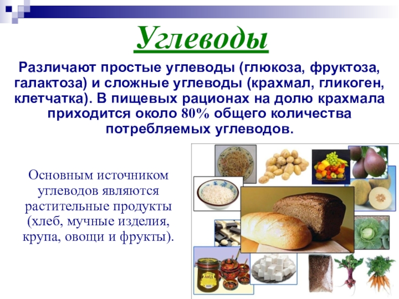 Основным источником углеводов являются растительные продукты (хлеб, мучные изделия, крупа, овощи и фрукты).